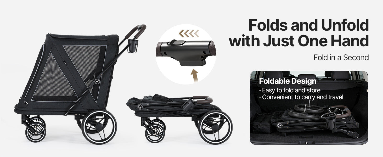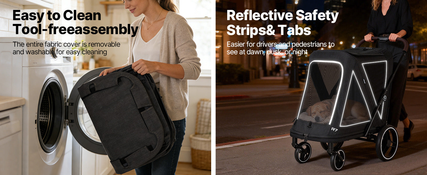 - Safety and Durable Construction:Reflective safety strips enhance visibility in low-light conditions. The stroller includes two interior safety leash anchors to help keep pets secure, along with dual cup holders for added convenience. Made from scratch-resistant, water-resistant materials, the Beberoad R7 is built for durability and long-term everyday use.