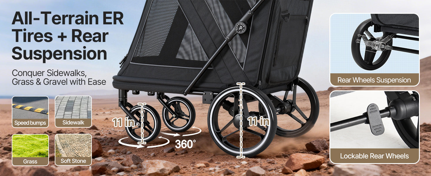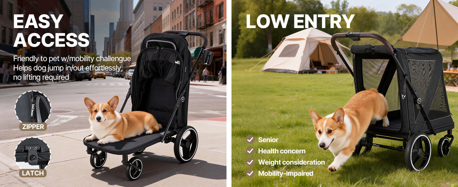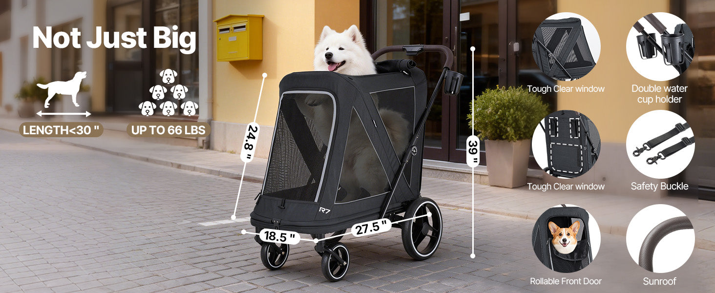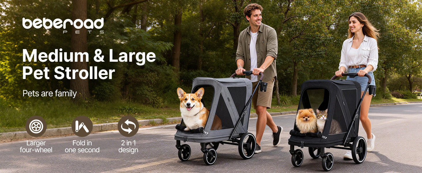 - Roomy and Robust for Your Furry Family:The Beberoad dog stroller for large dogs features a spacious interior measuring 30.71 × 18.5 × 24.8 inches, making it ideal for medium to large dogs weighing up to 66 lbs. Perfect for multi-pet households, senior dogs, or pets recovering from surgery, it allows your furry companions to comfortably join daily walks, park visits, and neighborhood outings.